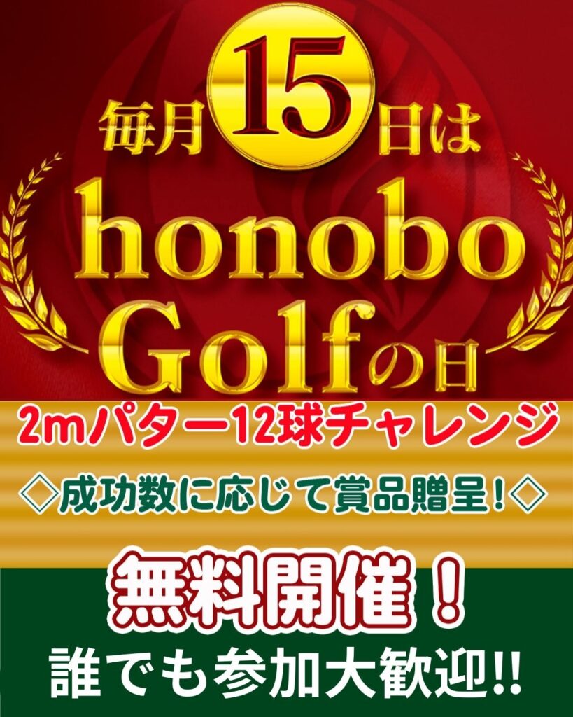 ✨⛳️毎月15日はhonoboGolfの日⛳️✨ By honobo-Golf2026年1月9日2026年1月9日イベント 【イベントのお知らせ📢】✨⛳️毎月15日はhonoboGolfの日⛳️✨ 🏌🏻♀️12月はパターチャレンジ🏌️♂️1人1回2メートルパター12球チャレンジ‼️成功球に応じて豪華賞品進呈も🏆 誰でもチャレンジできるのでお気軽にお立ち寄りください😆
